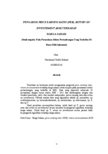 | Uncontrolled Keywords: | Harga Saham, price earning ratio (PER), return on investement (ROI) |