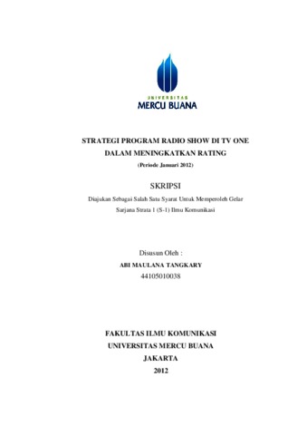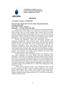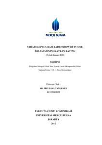 TANGKARY, ABI MAULANA (2012) STRATEGI PROGRAM RADIO SHOW DI TV ONE DALAM MENINGKATKAN RATING (Periode Januari 2012). S1 thesis, Universitas Mercu Buana Jakarta.