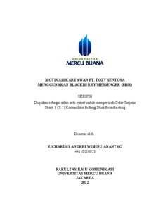 ANANTYO, RICHARDUS ANDREI WISHNU (2012) MOTIVASI KARYAWAN PT. TOZY SENTOSA MENGGUNAKAN BLACKBERRY MESSENGER (BBM). S1 thesis, Universitas Mercu Buana Jakarta.