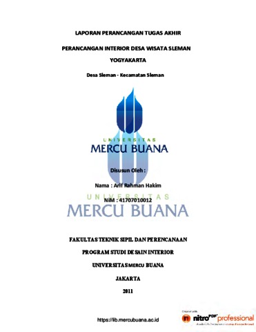 HAKIM, ARIF RAHMAN (2012) PERANCANGAN INTERIOR DESA WISATA SELEMAN YOGYAKARTA. S1 thesis, Universitas Mercu Buana.