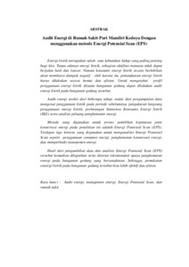 | Uncontrolled Keywords: | Audit energi, manajemen energi, energi potensial scan, dan rumah sakit |