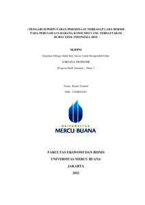 TURNIATI, KUKUT (2012) PENGARUH PERPUTARAN PERSEDIAAN TERHADAP LABA BERSIH PADA PERUSAHAAN BARANG KONSUMSI YANG TERDAFTAR DI BURSA EFEK INDONESIA (BEI). S1 thesis, Universitas Mercu Buana Jakarta.
