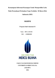 AZIZAH, RINA (2012) KEMAMPUAN INFORMASI KEUANGAN UNTUK MEMPREDIKSI LABA PADA PERUSAHAAN PERBANKAN YANG TERDAFTAR DI BURSA EFEK INDONESIA (BEI). S1 thesis, Universitas Mercu Buana Jakarta.