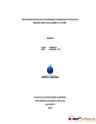 SUHENDRA, SUHENDRA (2012) PENGARUH KEPUASAN KONSUMEN TERHADAP LOYALITAS MEREK MINYAK RAMBUT GATSBY. S1 thesis, Universitas Mercu Buana Jakarta.
