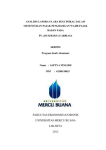 NINGSIH, SAPTYA (2012) ANALISIS LAPORAN LABA RUGI FISKAL DALAM MENENTUKAN PAJAK PENGHASILAN WAJIB PAJAK BADAN PADA PT. JSI SUKSES LUAR BIASA. S1 thesis, Universitas Mercu Buana Jakarta.