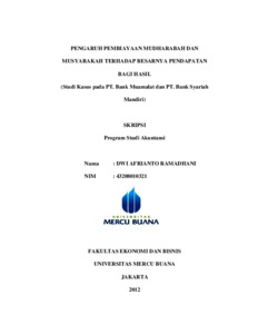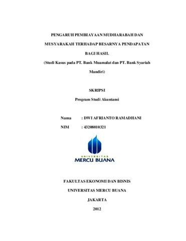 RAMADHANI, DWI AFRIANTO (2012) PENGARUH PEMBIAYAAN MUDHARABAH DAN MUSYARAKAH TERHADAP BESARNYA PENDAPATAN BAGI HASIL (Studi Kasus pada PT. Bank Muamalat dan PT. Bank Syariah Mandiri). S1 thesis, Universitas Mercu Buana Jakarta.