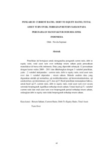 SEPTIANI, NOVILA (2012) PENGARUH CURRENT RATIO, DEBT TO EQUITY RATIO, TOTAL ASSET TURN OVER, TERHADAP RETURN SAHAM PADA PERUSAHAAN MANUFAKTUR DI BURSA EFEK INDONESIA. S1 thesis, Universitas Mercu Buana Jakarta.