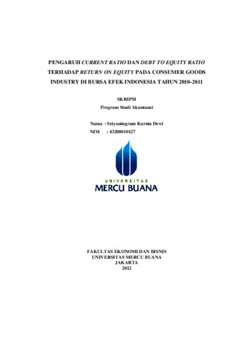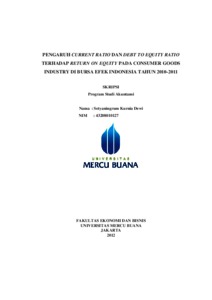 DEWI, SETYANINGRUM KURNIA (2012) PENGARUH CURRENT RATIO DAN DEBT TO EQUITY RATIO TERHADAP RETURN ON EQUITY PADA CONSUMER GOODS INDUSTRY DI BURSA EFEK INDONESIA TAHUN 2010-2011. S1 thesis, Universitas Mercu Buana Jakarta.