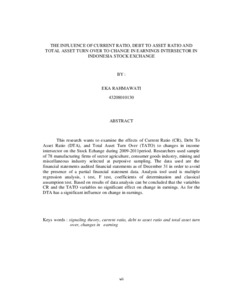 RAHMAWATI, EKA (2012) PENGARUH CURRENT RATIO, DEBT TO ASSET RATIO, TOTAL ASSET TURN OVER, TERHADAP PERUBAHAN LABA INTERSEKTOR DI BURSA EFEK INDONESIA. S1 thesis, Universitas Mercu Buana Jakarta.