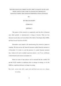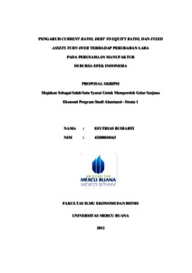 BUDIARTI, EVI TRIAS (2012) PENGARUH CURRENT RATIO, DEBT TO EQUITY RATIO, DAN FIXED ASSETS TURN OVER TERHADAP PERUBAHAN LABA PADA PERUSAHAAN MANUFAKTUR DI BURSA EFEK INDONESIA. S1 thesis, Universitas Mercu Buana Jakarta.
