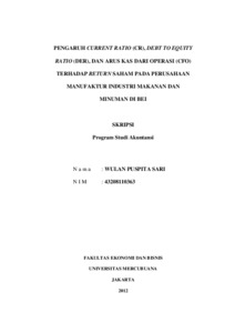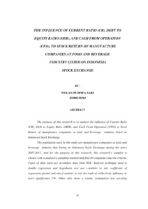 SARI, WULAN PUSPITA (2012) PENGARUH CURRENT RATIO (CR), DEBT TO EQUITY RATIO (DER), DAN ARUS KAS DARI OPERASI (CFO) TERHADAP RETURN SAHAM PADA PERUSAHAAN MANUFAKTUR INDUSTRI MAKANAN DAN MINUMAN DI BEI. S1 thesis, Universitas Mercu Buana Jakarta.