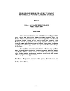 | Uncontrolled Keywords: | Pengumuman penerbitan sukuk syariah,Abnormal Return,dan Trading Volume Activity |