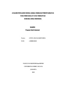 NURUL, EVITA MAYASARI (2012) ANALISIS PENGARUH MODAL KERJA TERHADAP PROFITABILITAS PADA PERUSAHAAN YANG TERDAFTAR DI BURSA EFEK INDONESIA. S1 thesis, Universitas Mercu Buana Jakarta.