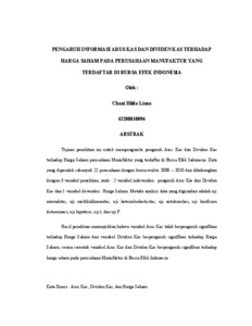LIANA, CHANI HILDA (2012) PENGARUH INFORMASI ARUS KAS DAN DIVIDEN KAS TERHADAP HARGA SAHAM PADA PERUSAHAAN MANUFAKTUR YANG TERDAFTAR DI BURSA EFEK INDONESIA. S1 thesis, Universitas Mercu Buana Jakarta.
