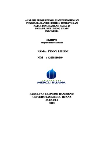 LILIANI, FENNY (2012) ANALISIS PROSES PENGAJUAN PERMOHONAN PENGEMBALIAN KELEBIHAN PEMBAYARAN PAJAK PENGHASILAN PASAL 29 PADA PT. KUEI MENG CHAIN INDONESIA. S1 thesis, Universitas Mercu Buana Jakarta.