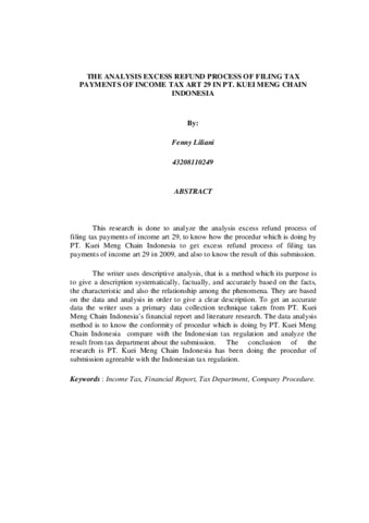This research is done to analyze the analysis excess refund process of filing tax payments of income art 29, to know how the procedur which is doing by PT. Kuei Meng Chain Indonesia to get excess refund process of filing tax payments of income art 29 in 2009, and also to know the result of this submission. The writer uses descriptive analysis, that is a method which its purpose is to give a description systematically, factually, and accurately based on the facts, the characteristic and also the relationship among the phenomena. They are based on the data and analysis in order to give a clear description. To get an accurate data the writer uses a primary data collection technique taken from PT. Kuei Meng Chain Indonesia’s financial report and literature research. The data analysis method is to know the conformity of procedur which is doing by PT. Kuei Meng Chain Indonesia compare with the Indonesian tax regulation and analyze the result from tax department about the submission. The conclusion of the research is PT. Kuei Meng Chain Indonesia has been doing the procedur of submission agreeable with the Indonesian tax regulation
