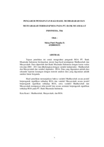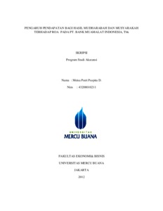 D, MEISA PUTRI PUSPITA (2012) PENGARUH PENDAPATAN BAGI HASIL MUDHARABAH DAN MUSYARAKAH TERHADAP ROA PADA PT. BANK MUAMALAT INDONESIA, Tbk. S1 thesis, Universitas Mercu Buana Jakarta.