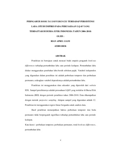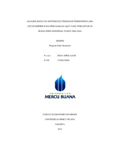 LIANI, RIAN APRIL (2012) ANALISIS BOOK-TAX DIFFERENCES TERHADAP PERSISTENSI LABA (STUDI EMPIRIS PADA PERUSAHAAN LQ45 YANG TERDAFTAR DI BURSA EFEK INDONESIA TAHUN 2006-2010). S1 thesis, Universitas Mercu Buana Jakarta.