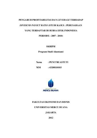 ASTUTI, PENI TRI (2012) PENGARUH PROFITABILITAS DAN LEVERAGE TERHADAP DIVIDEND PAYOUT RATIO (STUDI KASUS: PERUSAHAAN YANG TERDAFTAR DI BURSA EFEK INDONESIA PERIODE: 2007 - 2010). S1 thesis, Universitas Mercu Buana Jakarta.