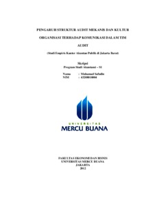SAFUDIN, MUHAMAD (2012) PENGARUH STRUKTUR AUDIT MEKANIS DAN KULTUR ORGANISASI TERHADAP KOMUNIKASI DALAM TIM AUDIT. S1 thesis, Universitas Mercu Buana Jakarta.