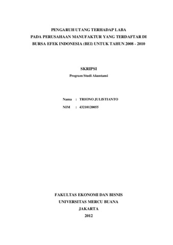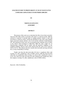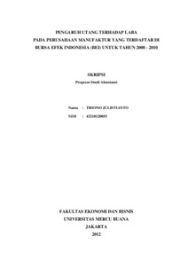 JULISTIANTO, TRIONO (2012) PENGARUH UTANG TERHADAP LABA PADA PERUSAHAAN MANUFAKTUR YANG TERDAFTAR DI BURSA EFEK INDONESIA (BEI) UNTUK TAHUN 2008 - 2010. S1 thesis, Universitas Mercu Buana Jakarta.