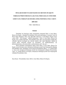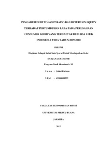 RIDWAN, SAHID (2012) PENGARUH DEBT TO ASSET RATIO DAN RETURN ON EQUITY TERHADAP PERTUMBUHAN LABA PADA PERUSAHAAN CONSUMER GOOD YANG TERDAFTAR DI BURSA EFEK INDONESIA PADA TAHUN 2009-2010. S1 thesis, Universitas Mercu Buana Jakarta.