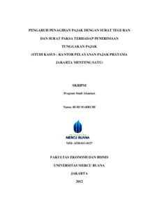MABRURI, RURI (2012) PENGARUH PENAGIHAN PAJAK DENGAN SURAT TEGURAN DAN SURAT PAKSA TERHADAP PENERIMAAN TUNGGAKAN PAJAK (STUDI KASUS : KANTOR PELAYANAN PAJAK PRATAMA JAKARTA MENTENG SATU). S1 thesis, Universitas Mercu Buana Jakarta.