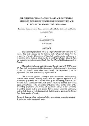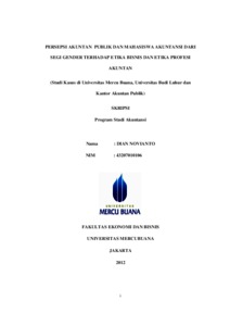 NOVIANTO, DIAN (2012) PERSEPSI AKUNTAN PUBLIK DAN MAHASISWA AKUNTANSI DARI SEGI GENDER TERHADAP ETIKA BISNIS DAN ETIKA PROFESI AKUNTAN (Studi Kasus di Universitas Mercu Buana, Universitas Budi Luhur dan Kantor Akuntan Publik). S1 thesis, Universitas Mercu Buana Jakarta.