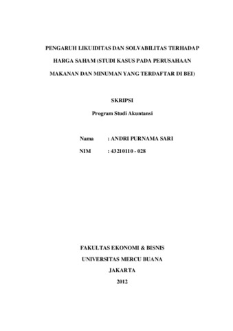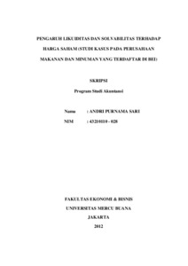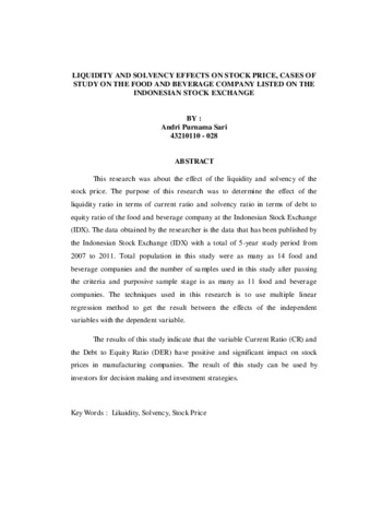 SARI, ANDRI PURNAMA (2012) PENGARUH LIKUIDITAS DAN SOLVABILITAS TERHADAP HARGA SAHAM (STUDI KASUS PADA PERUSAHAAN MAKANAN DAN MINUMAN YANG TERDAFTAR DI BEI). S1 thesis, Universitas Mercu Buana Jakarta.
