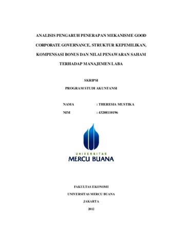 MUSTIKA, THERESIA (2012) ANALISIS PENGARUH PENERAPAN MEKANISME GOOD CORPORATE GOVERNANCE, STRUKTUR KEPEMILIKAN, KOMPENSASI BONUS DAN NILAI PENAWARAN SAHAM TERHADAP MANAJEMEN LABA. S1 thesis, Universitas Mercu Buana Jakarta.