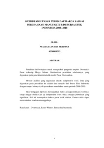 Penelitian ini bertujuan untuk mengetahui pengaruh empiris Overreaksi Pasar terhadap Harga Saham. Berdasarkan penelitian sebelumnya, yang digunakan pada penelitian ini adalah model Pasar Disesuaikan. Metode analisis yang digunakan adalah Independent t-test. Data yang digunakan pada penelitian ini adalah data empiris dari Bursa Efek Indonesia dengan sampel sebanyak 40 perusahaan manufaktur untuk periode 2008-2010. Hasil pengujian hipotesis menunjukkan bahwa terdapat indikasi overreaksi tetapi dengan melakukan uji independent t-test tidak terdapat perbedaan yang signifikan. Hal ini menunjukan bahwa pasar tidak efisien. Karena tidak dapat mecerminkan keadaan sesungguhnya.