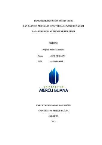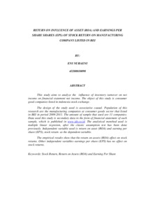 NURAENI, ENI (2012) PENGARUH RETURN ON ASSETS (ROA) DAN EARNING PER SHARE (EPS) TERHADAP RETURN SAHAM PADA PERUSAHAAN MANUFAKTUR DI BEI. S1 thesis, Universitas Mercu Buana Jakarta.