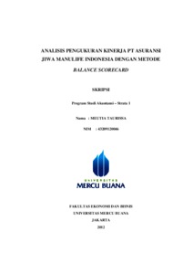 TAURISSA, MEUTIA (2012) ANALISIS PENGUKURAN KINERJA PT ASURANSI JIWA MANULIFE INDONESIA DENGAN METODE BALANCE SCORECARD. S1 thesis, Universitas Mercu Buana Jakarta.