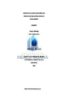 HELGA, JIL (2012) HUBUNGAN JUMLAH KOMPLAIN DENGAN JUMLAH PELANGGAN TELKOMSEL. S1 thesis, Universitas Mercu Buana Jakarta.