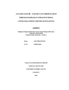WIRASTONO, ADI (2012) ANALISIS FAKTOR – FAKTOR YANG BERPENGARUH TERHADAP KEBIJAKAN STRUKTUR MODAL ( STUDI PADA EMITEN SEKTOR MANUFAKTUR ). S1 thesis, Universitas Mercu Buana Jakarta.
