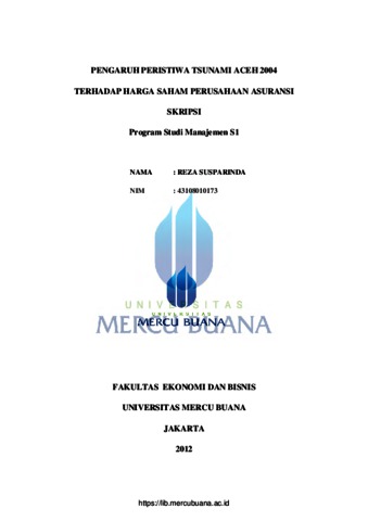 SUSPARINDA, REZA (2012) PENGARUH PERISTIWA TSUNAMI ACEH 2004 TERHADAP HARGA SAHAM PERUSAHAAN ASURANSI. S1 thesis, Universitas Mercu Buana Jakarta.