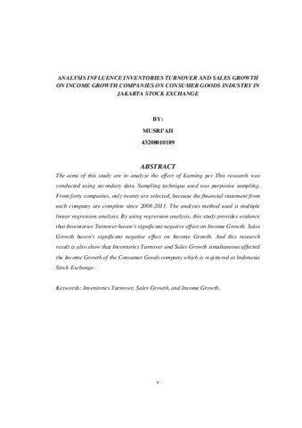 The aims of this study are to analyze the effect of Earning per This research was conducted using secondary data. Sampling technique used was purposive sampling. From forty companies, only twenty are selected, because the financial statement from each company are complete since 2008-2011. The analysis method used is multiple linear regression analysis. By using regression analysis, this study provides evidence that Inventories Turnover haven’t significant negative effect on Income Growth. Sales Growth haven’t significant negative effect on Income Growth. And this research result is also show that Inventories Turnover and Sales Growth simultaneous affected the Income Growth of the Consumer Goods company which is registered at Indonesia Stock Exchang