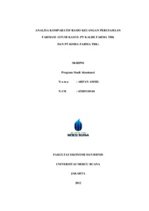 AMSIL, ARFAN (2012) ANALISA KOMPARATIF RASIO KEUANGAN PERUSAHAAN FARMASI (STUDI KASUS: PT KALBE FARMA TBK DAN PT KIMIA FARMA TBK). S1 thesis, Universitas Mercu Buana Jakarta.