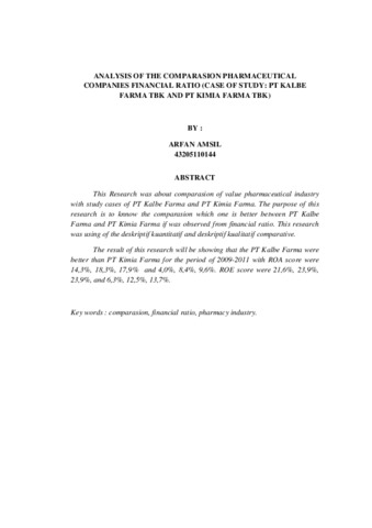 This Research was about comparasion of value pharmaceutical industry with study cases of PT Kalbe Farma and PT Kimia Farma. The purpose of this research is to knnow the comparasion which one is better between PT Kalbe Farma and PT Kimia Farma if was observed from financial ratio. This research was using of the deskriptif kuantitatif and deskriptif kualitatif comparative. The result of this research will be showing that the PT Kalbe Farma were better than PT Kimia Farma for the period of 2009-2011 with ROA score were 14,3%, 18,3%, 17,9% and 4,0%, 8,4%, 9,6%. ROE score were 21,6%, 23,9%, 23,9%, and 6,3%, 12,5%, 13,7%.