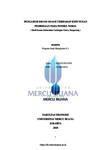 Pratiwi, Hanni (2010) PENGARUH BRAND IMAGE TERHADAP KEPUTUSAN PEMBELIAN PADA PONSEL NOKIA ( Studi Kasus Kel. Lar-Ut , Tangerang ). S1 thesis, Universitas Mercu Buana.
