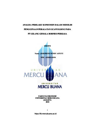 Astuti, Josephine Windy (2010) ANALISA PERILAKU KONSUMEN DALAM MEMILIH PENGGUNAAN PERALATAN SCAFFOLDING PADA PT. GILANG GEMALA BORNEO PERKASA. S1 thesis, Universitas Mercu Buana.