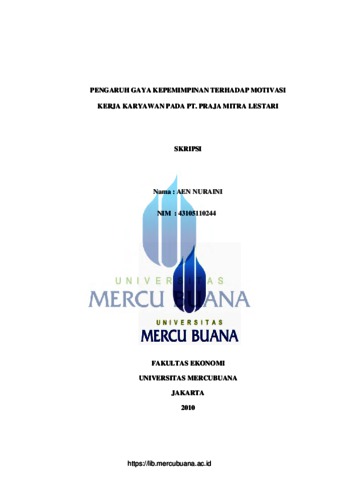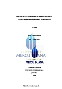 Nuraini, Aen (2010) PENGARUH GAYA KEPEMIMPINAN TERHADAP MOTIVASI KERJA KARYAWAN PADA PT. PRAJA MITRA LESTARI. S1 thesis, Universitas Mercu Buana.