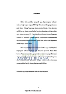 | Uncontrolled Keywords: | gaya kepemimpinan, motivasi kerja karyawan. |