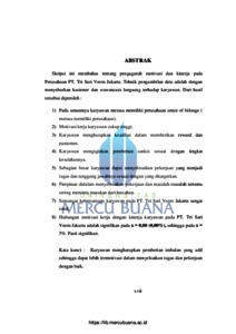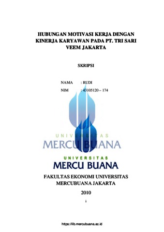 Rudi, Rudi (2010) HUBUNGAN MOTIVASI KERJA DENGAN KINERJA KARYAWAN PADA PT. TRI SARI VEEM JAKARTA. S1 thesis, Universitas Mercu Buana.