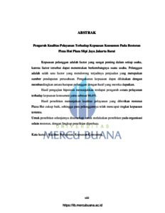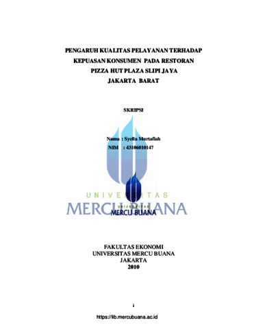 Murtafiah, Syella (2010) PENGARUH KUALITAS PELAYANAN TERHADAP KEPUASAN KONSUMEN PADA RESTORAN PIZZA HUT PLAZA SLIPI JAYA JAKARTA JAYA JAKARTA BARAT. S1 thesis, Universitas Mercu Buana.