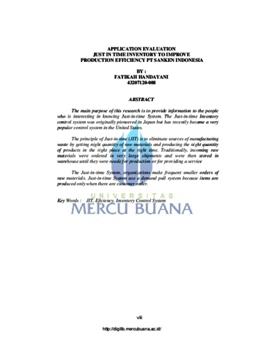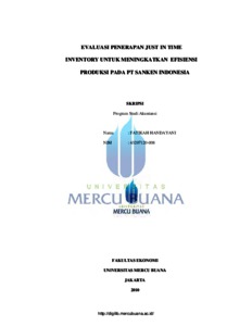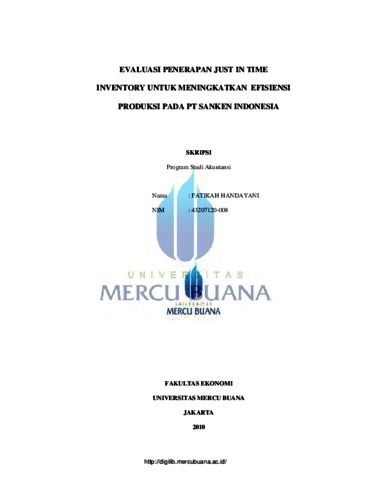 Handayani, Fatikah (2010) Evaluasi penerapan Just In Time Inventory untuk meningkatkan efisiensi produksi pada PT. Sanken Indonesia. S1 thesis, Universitas Mercu Buana.
