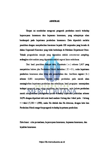 Skripsi ini membahas mengenai pengaruh perubahan merek terhadap kepercayaan konsumen dan kepuasan konsumen, yang selanjutnya akan berdampak pada keputusan pembelian konsumen. Data diperoleh melalui penelitian dengan menyebarkan kuesioner kepada 100 responden yang berada di dalam Supermall Karawaci yang telah berbelanja di Matahari Department Store. Teknik pengambilan sample yang digunakan adalah convenience sampling, sedangkan alat analisis yang digunakan adalah regresi linier sederhana. Dari hasil penelitian didapat data, Konstanta ( a ) sebesar 2,417 yang menyatakan bahwa jika Perubahan Merek diabaikan ( X = 0 ), maka keputusan pembelian konsumen akan tetap ada penambahan dan koefisien regresi ( b ) sebesar 0,801 menyatakan bahwa setiap perubahan pada merek akan meningkatkan keputusan pembelian dan sebaliknya, hasil pengujian menunjukan terdapat pengaruh yang cukup signifikan dari konsumen, yaitu bahwa perubahan merek menghasilkan peningkatan positif terhadap keputusan pembelian sebesar 34,9% dengan diperkuat oleh seta hasil analisis t hitung dan t tabel yaitu : t hitung > t tabel (7,250 > 1,990), maka Ho ditolak dan Ha diterima, dengan kata lain Perubahan Merek sangat berpengaruh terhadap keputusan pembelian. Kata kunci : citra perusahaan, kepercayaan konsumen, kepuasan konsumen, dan loyalitas konsumen