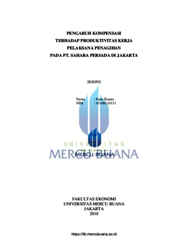 Rianto, Faris (2010) PENGARUH KOMPENSASI TERHADAP PRODUKTIVITAS KERJA PELAKSANA PENAGIHAN PADA PT. SAHARA PERSADA DI JAKARTA. S1 thesis, Universitas Mercu Buana.