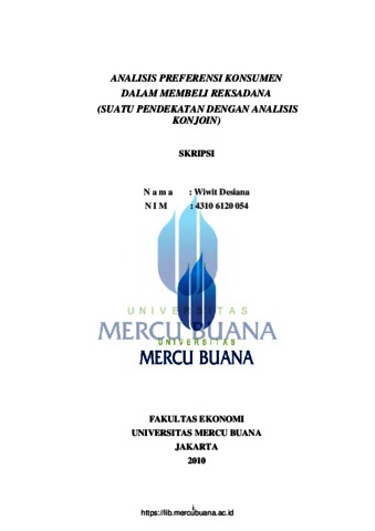 Desiana, Wiwit (2010) ANALISIS PREFERENSI KONSUMEN DALAM MEMBELI REKSADANA (Suatu Pendekatan dengan Analisis Konjoin). S1 thesis, Universitas Mercu Buana.