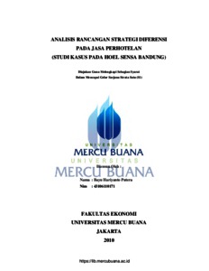 Putera, Bayu Hariyanto (2010) ANALISIS RANCANGAN STRATEGI DIFERENSIASI PADA JASA PERHOTELAN (Studi Kasus pada Hotel Sensa Bandung). S1 thesis, Universitas Mercu Buana.